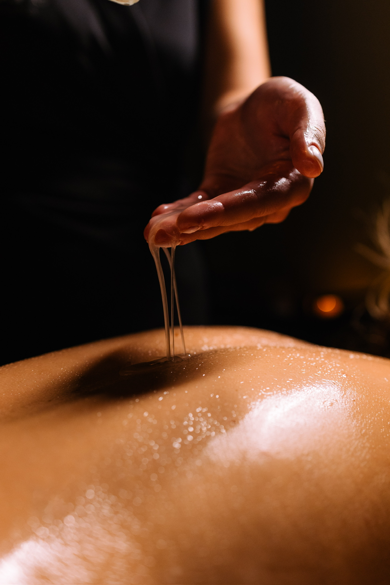 Πραγματοποιείται με ζεστό κερί σόγιας το οποίο με τη θερμότητα λιώνει σιγά – σιγά και μετατρέπεται σε ένα απολαυστικό λάδι για μασάζ. Περιέχει και βούτυρο καριτέ για βαθιά θρέψη και ενυδάτωση, αποτοξίνωση και χαλάρωση.